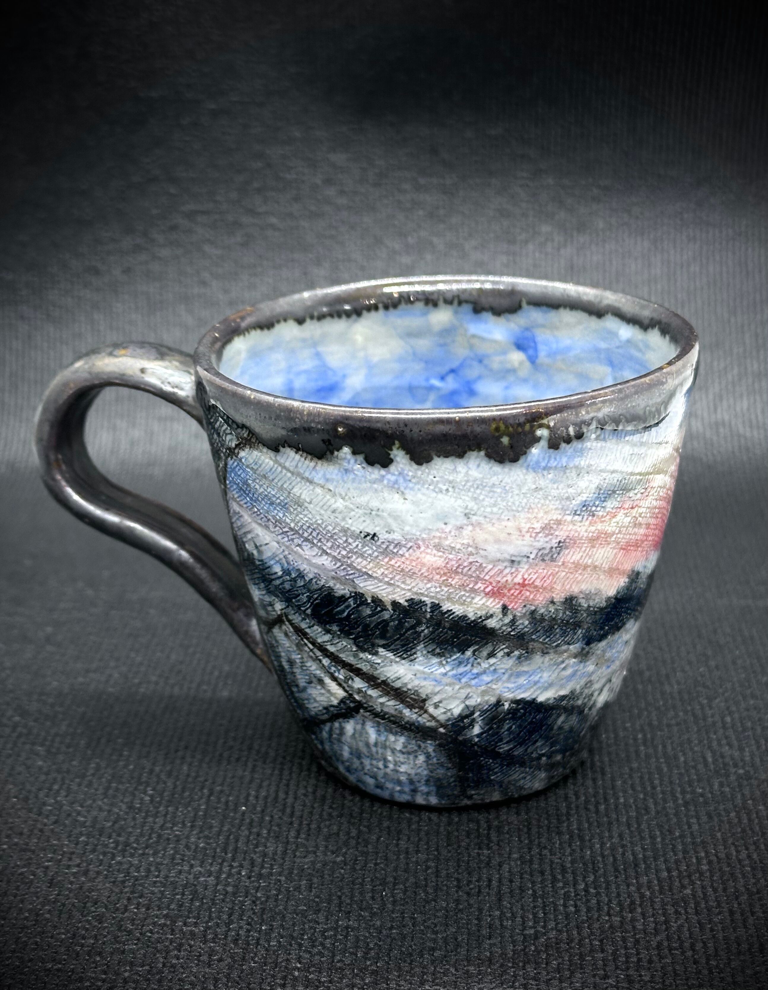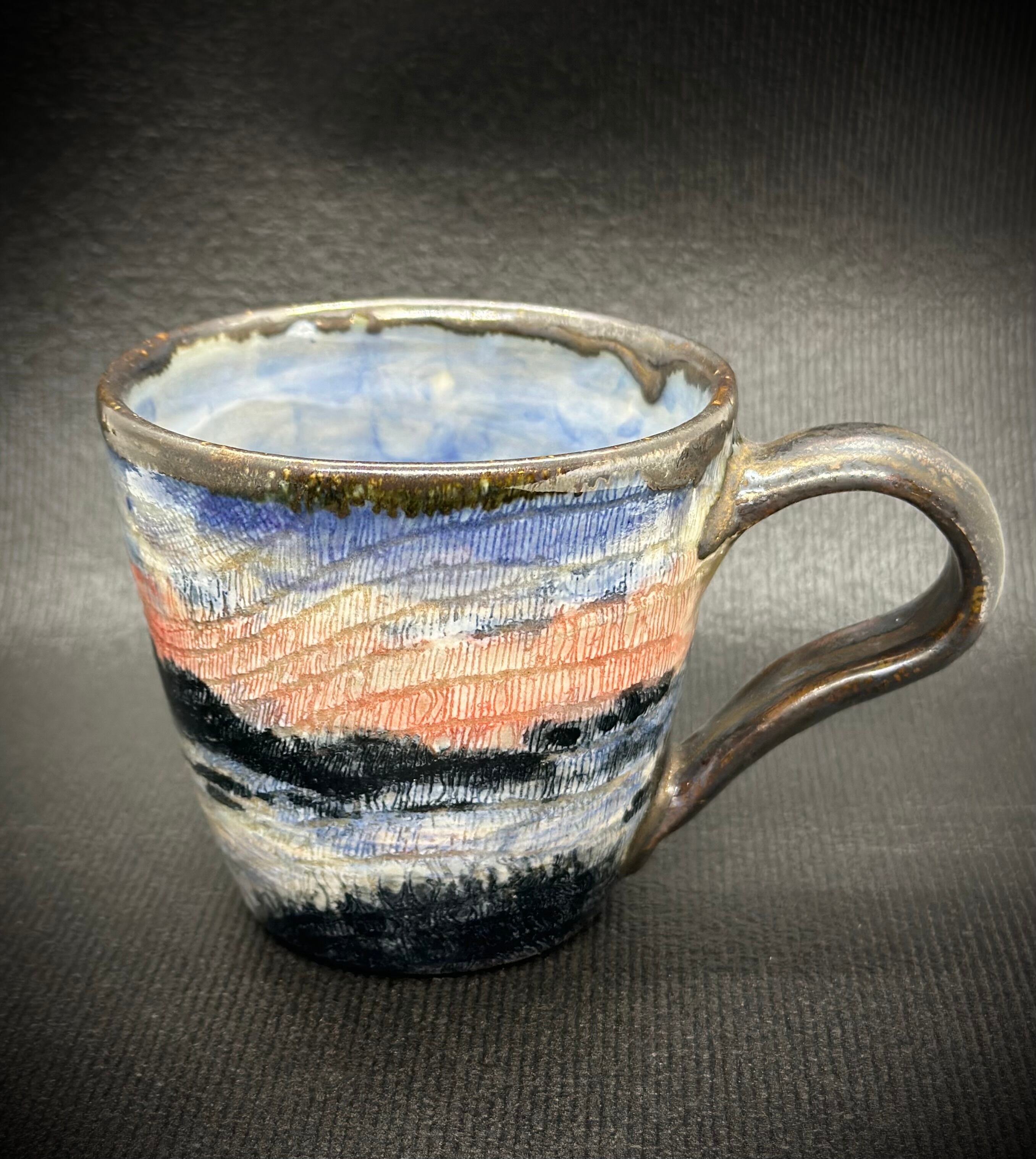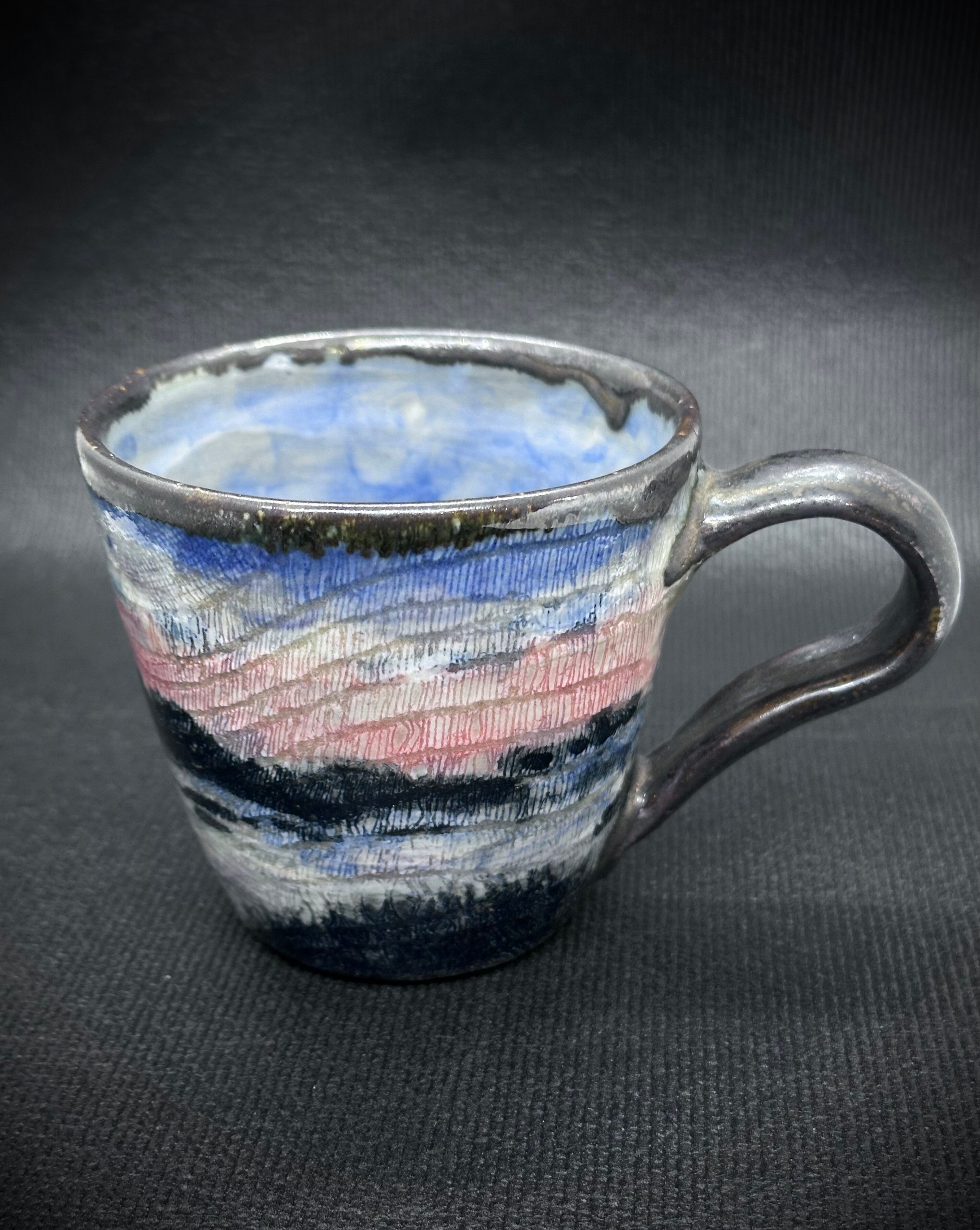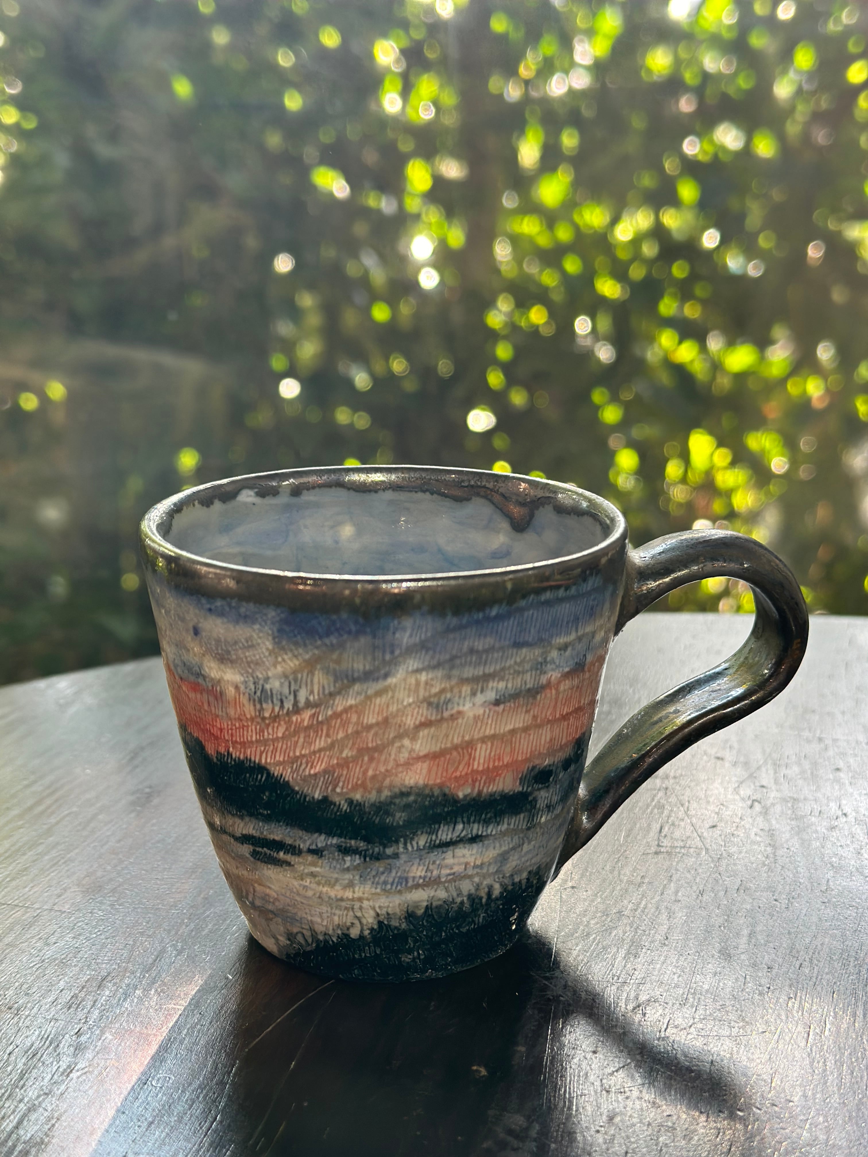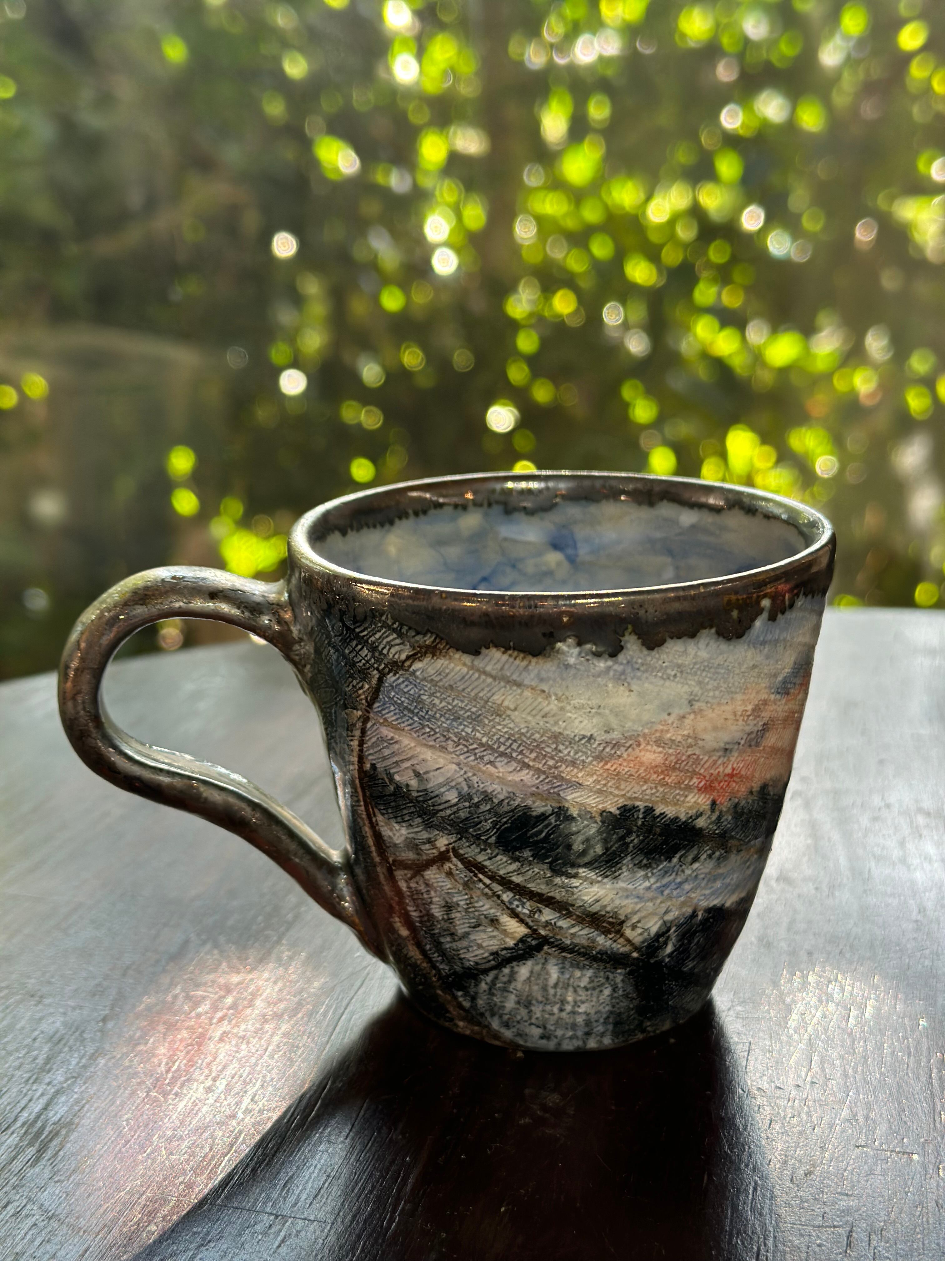 ●作品名 : 【夕焼けから夜のとばりがおりてくる頃】 ●作家名 : 西美紀 Miki Nishi ●技法 : 陶芸 ●サイズ 約直径8.7㎝×H8㎝ ●材質・素材:陶器(九州土)・化粧土・下絵付け・オリジナル透明釉・色釉薬 ●焼き物なので、一生色褪せることがありません。 ●手作り・手描き・一点もの ●食器としてお使いいただけます。 2024