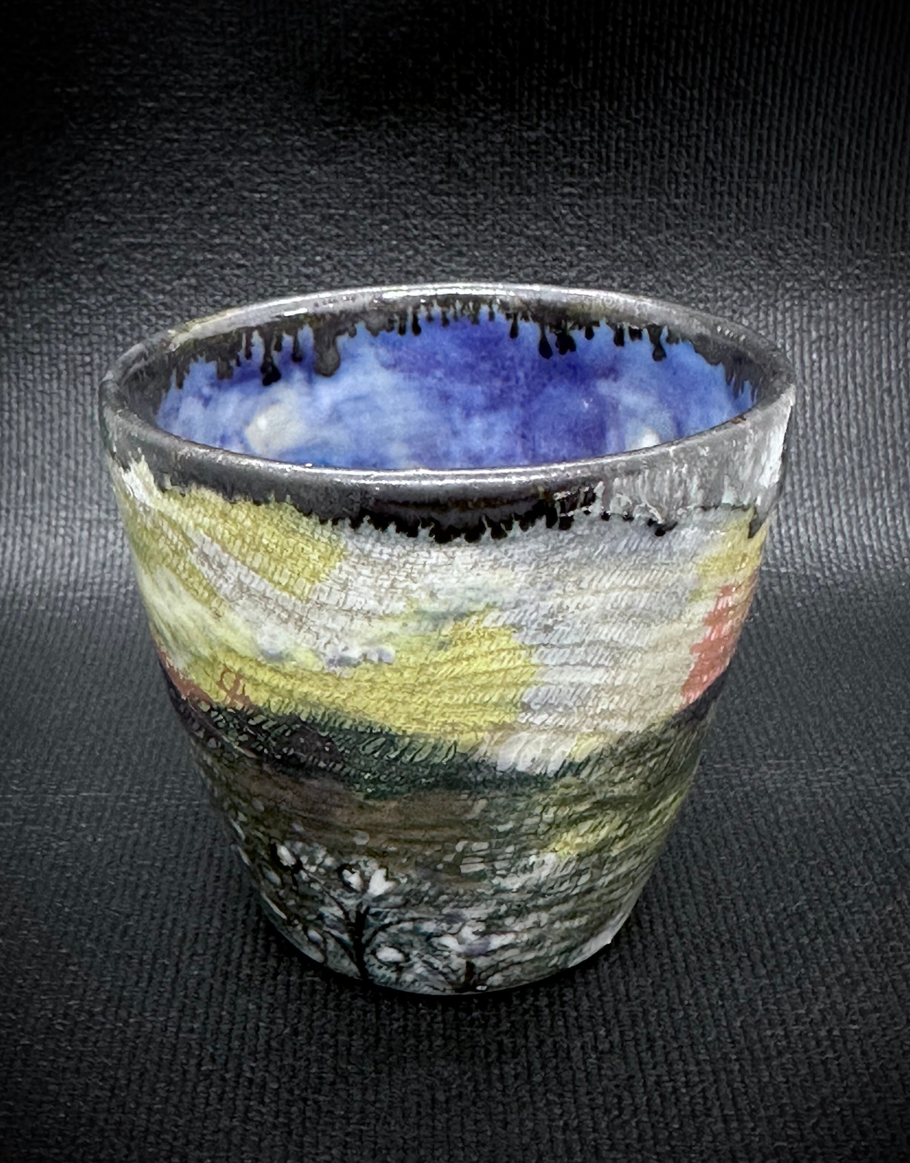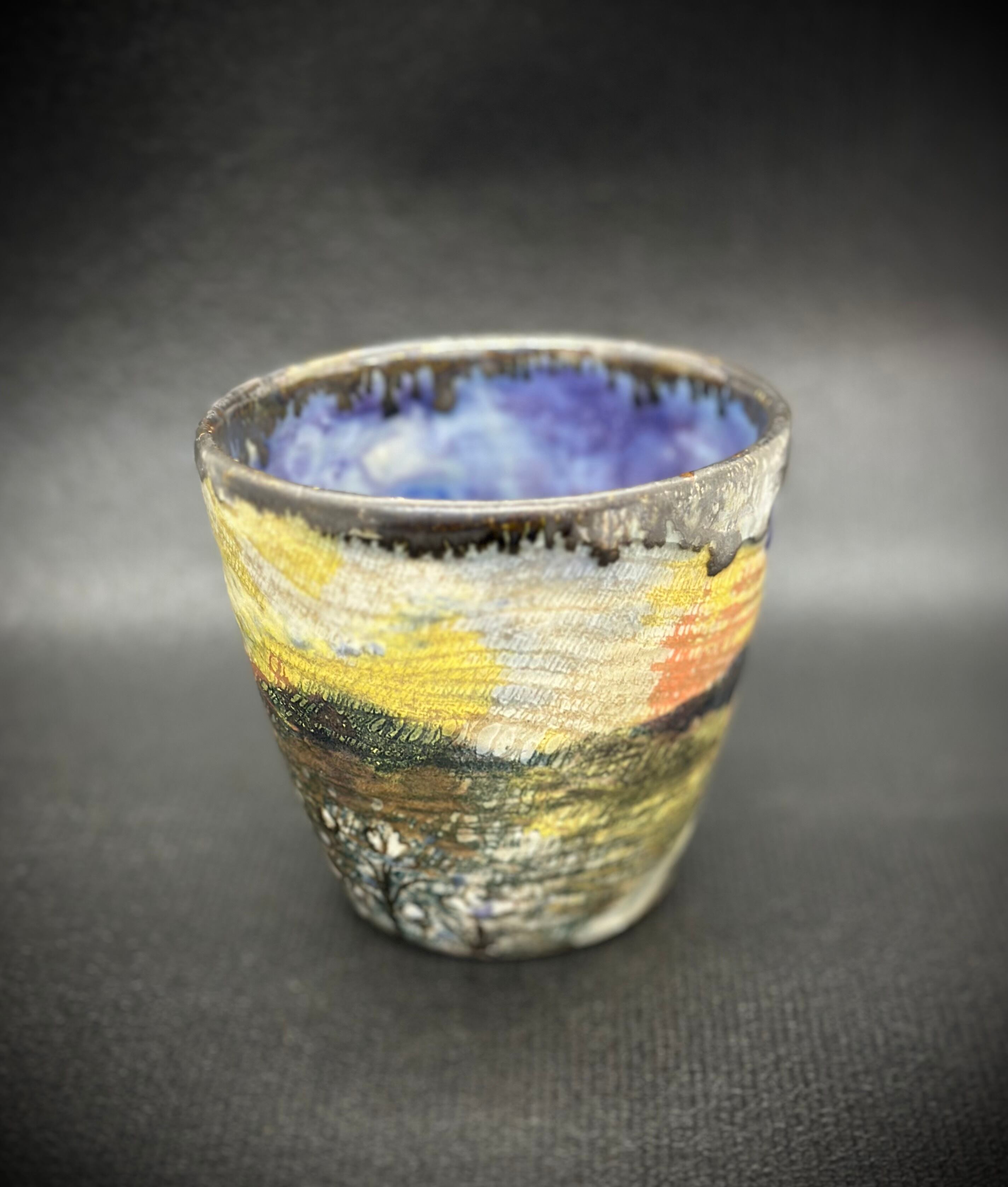 ●作品名 : 【いつかの夕暮れ】 ●作家名 : 西美紀 Miki Nishi ●技法 : 陶芸 ●サイズ 約直径9㎝×H8㎝ ●材質・素材:陶器(九州土)・化粧土・下絵付け・オリジナル透明釉・色釉薬 ●焼き物なので、一生色褪せることがありません。 ●手作り・手描き・一点もの ●食器としてお使いいただけます。 2024