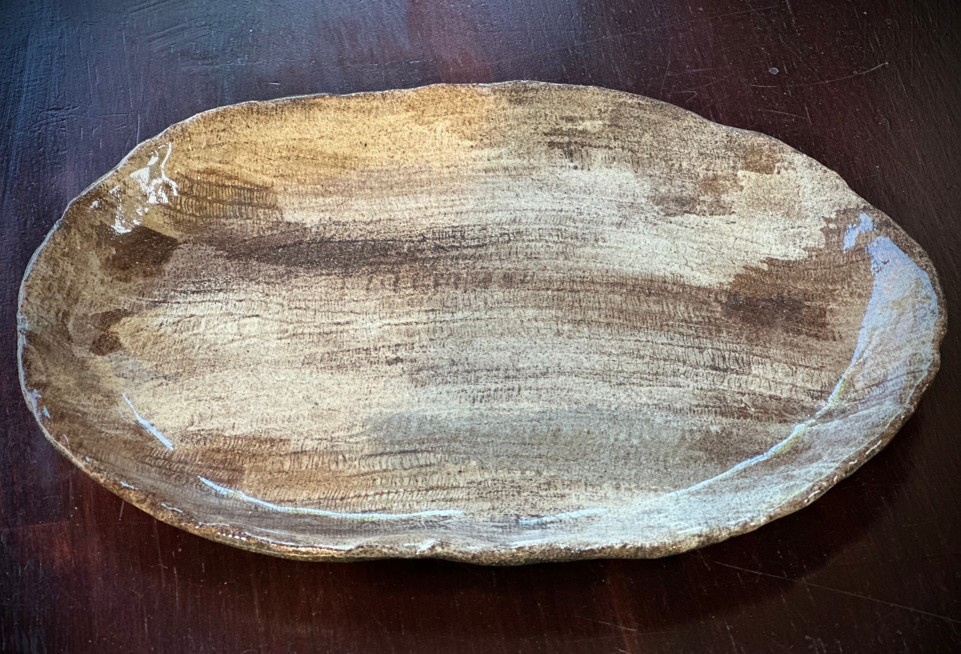 ●作品名 : 【木々の思い出】樹皮のイメージ楕円皿 ●作家名 : 西美紀 Miki Nishi ●技法 : 陶芸 ●サイズ :約25㎝×18㎝ ●材質・素材:陶器(唐津土)・化粧土・下絵の具(下絵付け)・オリジナル透明釉・ ●焼き物なので、一生色褪せることがありません。大切に使っていただければ、時を超えてあなたと共に寄り添います。 ●手作り・一点もの ●食器としてお使いいただけます。 ⚠︎食洗機不可 土物の為、優しく手洗いお願いします。 食器として使いやすい絵柄無しです。 何層にも化粧土を乗せました。