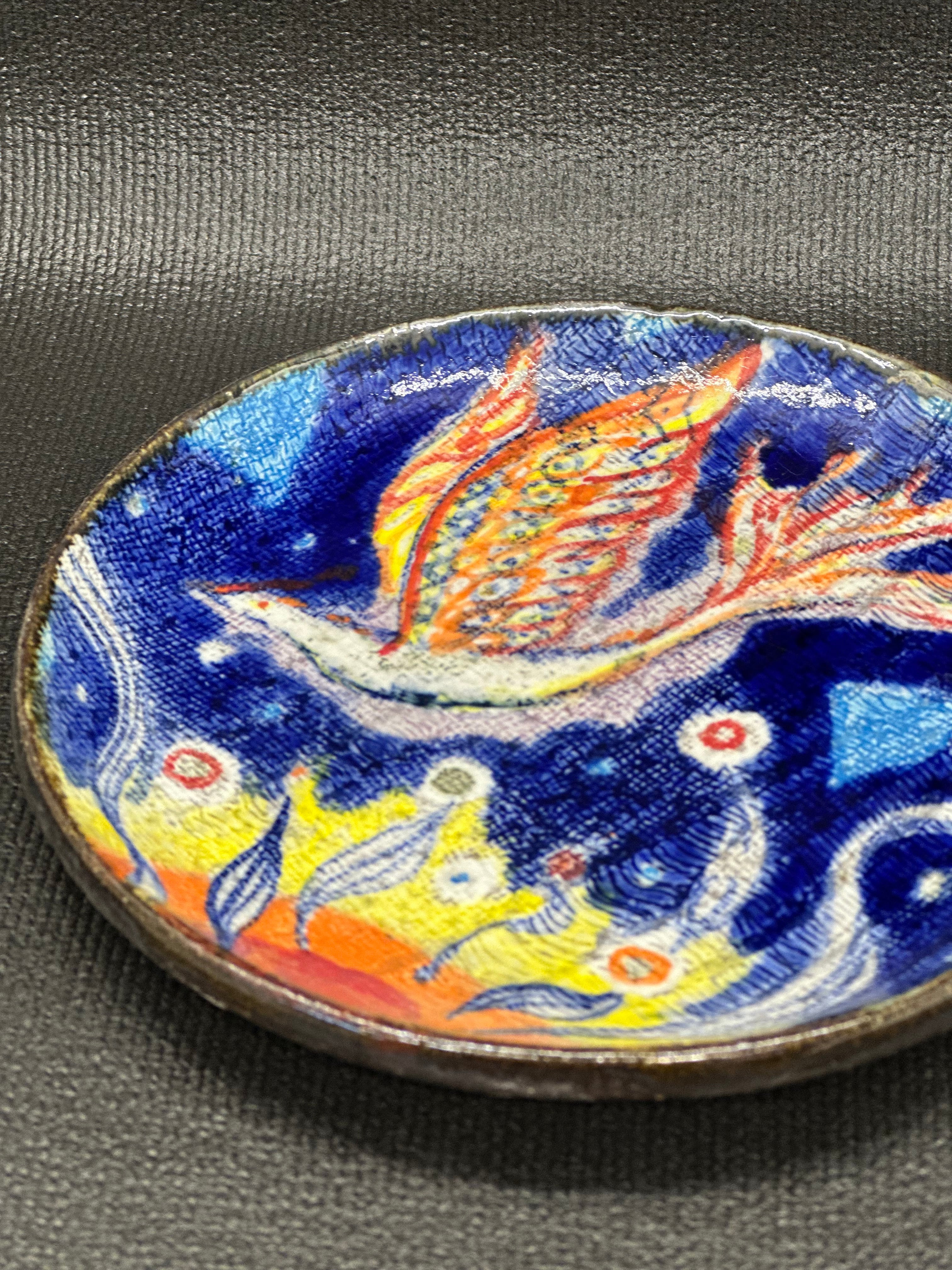 ●作品名 : 【新しく生まれる・ふたたび】絵皿 ●作家名 : 西美紀 Miki Nishi ●技法 : 陶芸 ●サイズ :直径Φ14.7㎝ ●材質・素材:陶器(唐津土)・化粧土・下絵の具(下絵付け)・オリジナル透明釉・色釉薬 ●焼き物なので、一生色褪せることがありません。大切に使っていただければ、時を超えてあなたと共に寄り添います。 ●手作り・手描き・一点もの ●食器としてお使いいただけます。 ⚠︎食洗機不可 優しく手洗い ✴︎皿立て付き 2026